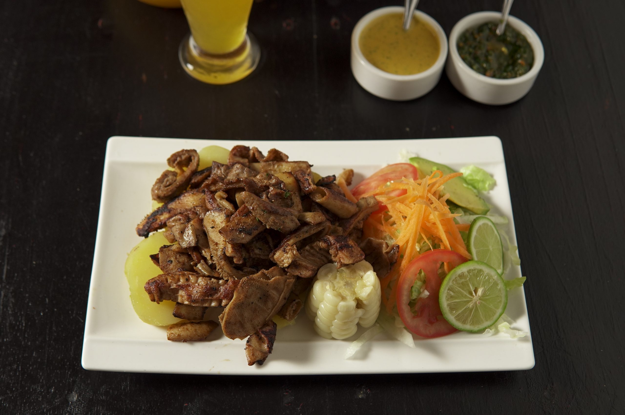 Mollejitas a la parrilla + Plátano Asado + Papa + Ensalada